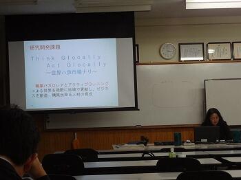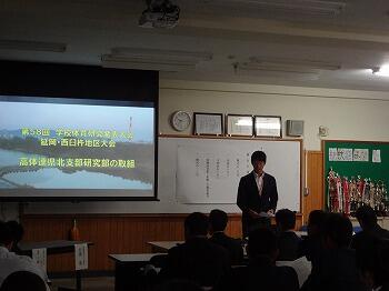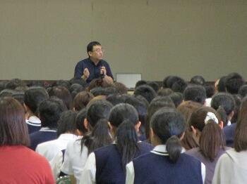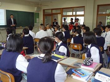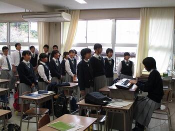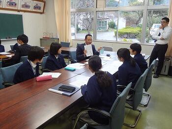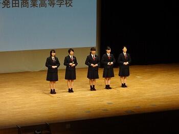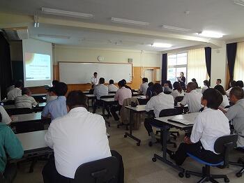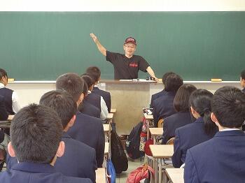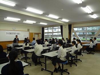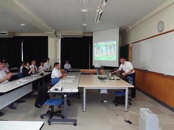 その後、本校の田牧先生による「熊本商業高校学校」訪問報告。