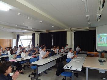 ☆閉会行事。本校の花盛校長先生が「商業科の教師は教育のプロであっても、ビジネスのプロではない。それでも、生徒にビジネスを教えなければならない。だからこそ、外部の企業などの本物のビジネスのプロに触れながら職員の資質向上を図る必要がある」また、宮崎商業高校校長の外山校長先生の言葉「商業はおもしろい」を用いられ、それぞれの商業の先生方がそれぞれの面白さを生徒に伝えて欲しいと述べられ、参加者の深い頷きで閉幕しました。