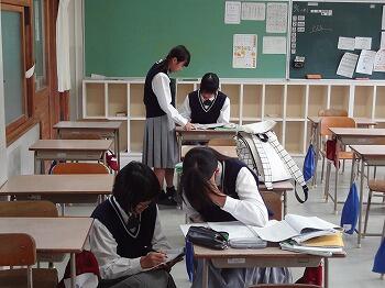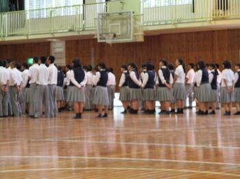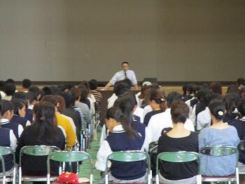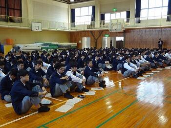 テスト終了後、全校集会と学年集会が行われました。全校集会では、経営情報が今年度より取り組んでいる『オンラインショップまなびや』についての説明があり、学年集会では3年生は容儀検査、2年生は川谷先生の話、1年生は横山先生と佐藤先生の話がありました。