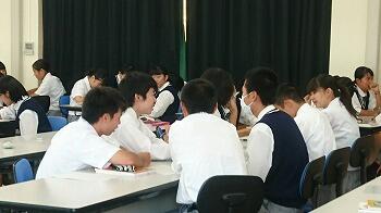 午前は、宮崎商業高校の上村先生によるアクティブラーニング型の研究授業を参観後、研究協議の第一部。