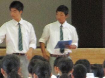 ☆教育長のあいさつです。 ☆閉会のことばを平尾生徒会副会長がしっかりと述べました。