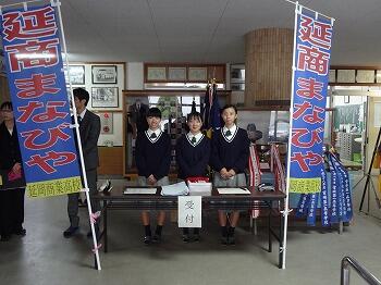 ☆受付担当の生徒たちです。 ☆名刺交換をする広瀬社長です。