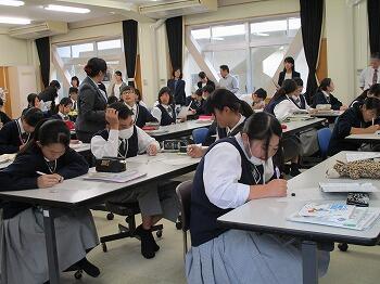 ☆授業最後の小テスト。スラスラと答えていました ☆研究協議。感想や上村先生への質問が多々出ました