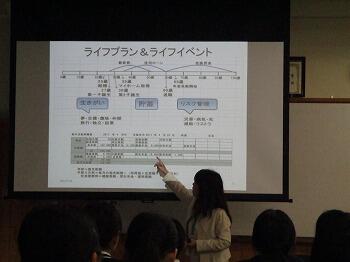 2年生の「ライフプランナーによる将来設計を描く授業」では、仮想の家族を設定しその家族の将来設計(教育・住宅・その他のプラン)をグループワークで検討します。「今」と「将来」の自分にとって本当に大切なものはなにか、考えます。