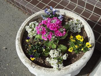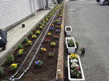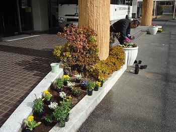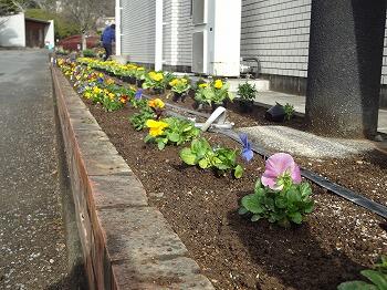 その卒業式に向けて、今日は花壇の花植えが行われました。事務室の3名の方々が一つ一つ丁寧に植えていました。私も少しだけ手伝わせてもらいました。卒業式を彩る綺麗な花壇になることを願っています。