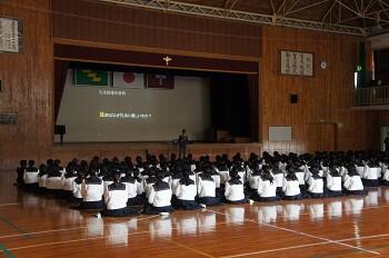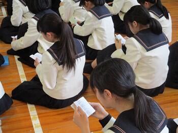 教務主任から“単位”について学びます。生徒手帳を開いて熱心に読んでいました。