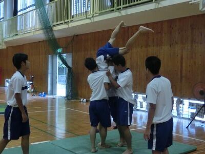 本日は、3年生の学年練習が5.6限目に行われました。まず5限目のはじめに、台風12号に備えてテントの天幕を外す作業を行い、その後、女子は『サンバばんば』の練習を、男子は組み体操の練習をしました。