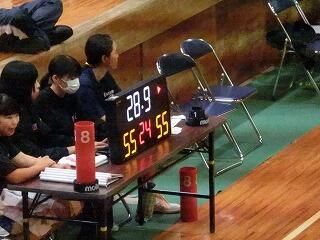 珠算電卓検定試験終了後に、本校女子の試合があったため運良く応援することができました。都城商業高校相手に第1・第2ピリオドで11点の差をつけられ心配しましたが、後半に素晴らしい粘りを見せて、見事逆転勝利を飾ってくれ、見ている私たちも感動しました。是非、明日の試合も頑張ってください。