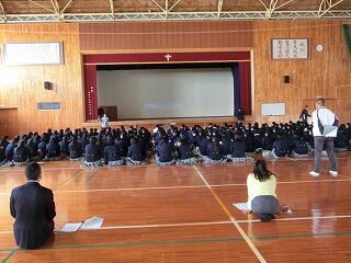 2年生は、県北地区の人権同和研究員である延岡工業高校の平田公大先生を招いて、「ともに差別をなくす取組」という演題で講演を実施しました。