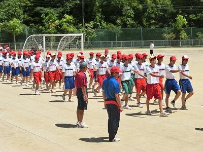 本日は4限目から7限目までの4時間を利用しての全体練習でした。4限目は行進練習をやり、午後はラジオ体操の練習を念入りにやったあと、学年別に分かれました。