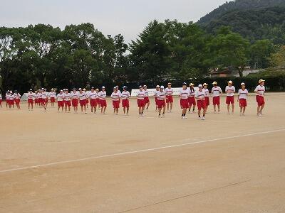 ☆徳永先生の「〇〇団、気合い入っているかー」、「〇〇団、優勝するぞ-」の掛け声に応える2年生女子。