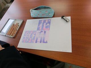 本日の1限目、14HRの「美術」選択者の授業の様子を見に行きました。「美術」の授業は、いつ行っても生徒たちが熱心に作品製作に取り組んでおり、感心させられます。今回は「レタリング」の授業を行っていました。