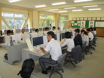 本日、午後より中学校の先生方を対象にした「学校説明会」を実施しました。学校や学科の説明を行った後、授業見学や体験授業をしていただき、延商のことを理解してもらい、各中学校の進路指導に役立ててもらうのが目的です。お忙しい中、参加していただいた中学校の先生方に心からお礼申し上げます。