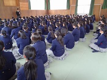 昨日で学年末考査が終わり、来週から宅習期間に入る3年生に対し、本日学年集会を行われ、宅習期間中の注意事項などの説明がありました。3月1日の卒業式に向けて充実した宅習期間を過ごしてください。