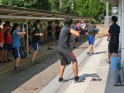 体育大会に向けて紫団のリーダー練習が昨日から始まりました。猛暑の中、駐輪場の陰をうまく利用して練習に励んでいます。休憩を入れながら、水分補給もしっかりして、熱中症対策も万全です。約1ヶ月後の体育大会での活躍がとても楽しみです。頑張れ!!紫団!!