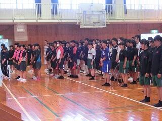 本日、今年度初めての部活動生集会が行われました。本校では、部活動全体をまとめる大キャプテン制度があり、まずは、大キャプテンの野球部主将、森本くんのあいさつから始まりました。「部活動生が中心となって、現在取り組んでいる、無言集合や校門一礼などをさらにより良いものにしていきましょう」と訴えてくれました。