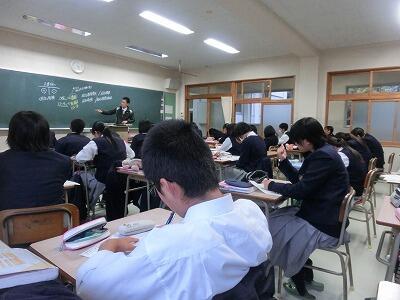 ホームページをアップするために学校へ行くと、教室から生徒たちの声が聞こえました。声をたどって3階へ上がってみると、空手道部とソフトボール部の部員たちが勉強会をしていました。勉強会の後、おそらく練習をするのでしょう。勉強と部活動の両立は立派です。