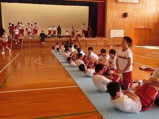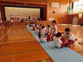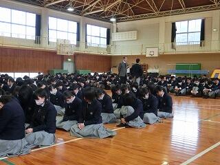 ☆全体終礼です。全員が揃うまで黙想して待ちます。