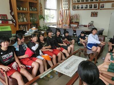 猛暑の中、一生懸命に作業をしてくれたお礼に、作業終了後、バレー部員をクーラーの効いている校長室で涼んでもらって、集合写真を撮りました。