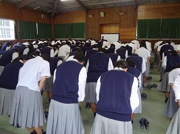 テスト終了後、全校集会と学年集会が行われました。全校集会では、経営情報が今年度より取り組んでいる『オンラインショップまなびや』についての説明があり、学年集会では3年生は容儀検査、2年生は川谷先生の話、1年生は横山先生と佐藤先生の話がありました。