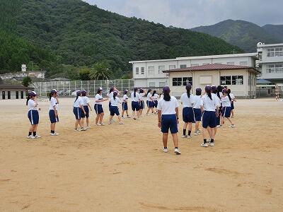 本日は、3年生の学年練習が5.6限目に行われました。まず5限目のはじめに、台風12号に備えてテントの天幕を外す作業を行い、その後、女子は『サンバばんば』の練習を、男子は組み体操の練習をしました。