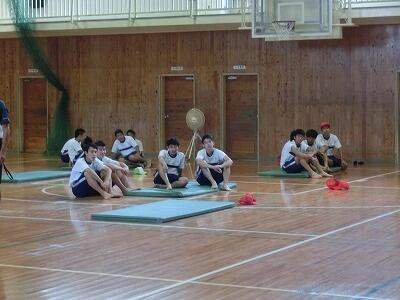 女子は徳永先生のユーモア溢れる中にも、生徒の元気を引き出す指導のもと、大きな声を出しながら頑張っていました。男子は、宮本先生、圖師先生という体操専門の先生コンビが手取り足取りの丁寧な指導のもと、『帆掛け船』の練習に励んでいました。