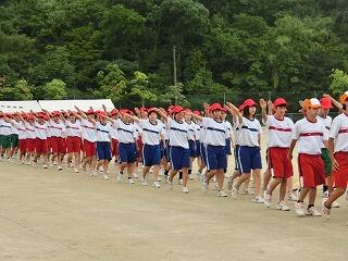 本日は4限目から7限目までの4時間を利用しての全体練習でした。4限目は行進練習をやり、午後はラジオ体操の練習を念入りにやったあと、学年別に分かれました。