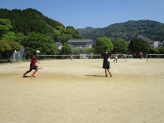 隣りのテニスコートでは、男子ソフトテニス部が練習していました。最近力をつけてきた男子ソフトテニス部、高校総体での活躍が楽しみです。