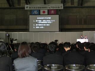 去る11月4日(金)より6日(日)まで、石川県金沢市で開催された『全国産業教育フェア石川大会』に視察に行って参りました。全国の工業・農業・商業・水産・家庭・情報・福祉・看護の8つの分野の専門高校が集い、日頃の学習の成果を発表するという大会です。「伝統を受け継ぎ、未来へ伝えよう」、「人と人とのつながりをいかそう」、「新時代に対応した技能を身につけよう」のテーマのもと、生徒たちの素晴らしい学習成果が発表されていました。