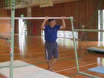 昨日、圖師先生が宮崎西高校の体操競技同好会の生徒を連れて本校体育館へ練習に来られました。本校体操競技部を1から築かれ17年間かけて育て続けた圖師先生には、本校体育館が良く似合っています。