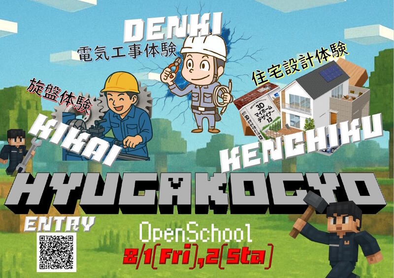 日向工業高校一日体験入学を8月1日(金)・8月2日(土)に以下の日程で実施いたします。