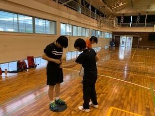 九州保健福祉大学生が4名指導にきてくださいました。専門的な臀筋や股関節を意識したトレーニングを行っていただきました。