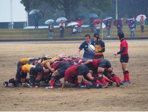 | 第2試合、日向高校戦が雨の中、実施されました。 先制トライを獲得し、日向工業に流れが来るはずでしたが、その後は良さを出し切れずに5ー50 で敗れてしまいました。今回、初のシード権を獲得し臨んだ新人戦でしたが、まだまだ課題はたく さんあるので、次の高校総体に向けて、気持ちを切り替えて頑張っていこうと思います。 応援ありがとうございました。 |