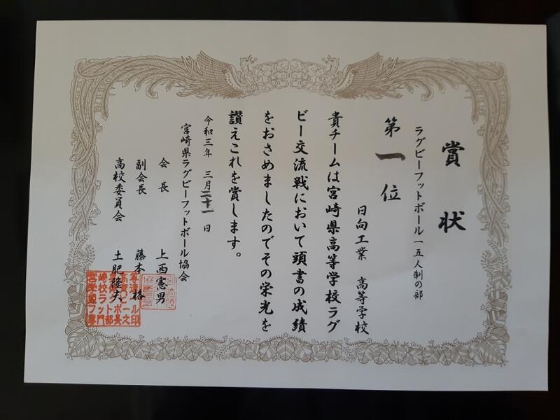 | 高鍋町小丸川河畔運動公園にて、コロナ禍で中止になった新人戦の代替 試合が行われました。1回戦、都城高校と対戦し47対7で勝ち進み、 2回戦、延岡星雲高校に35対0で勝利することができました。 今回は、決勝戦はなく高鍋高校と同率1位になりました! 今年度の試合はこれで終わりになりますが、来年度は花園出場に向けて さらに頑張ります!! Let's enjoy ラグビー♬ | |