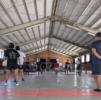 雨の日の練習は武道場でのフィジカルトレーニング。身体づくりのの基礎から行っていきます。でも、この日は途中から晴れてきたので外でも練習。やっぱり、外での練習は広々と気分も晴れやかです ~Stand and Fight~ 日向工業ラグビー部 |
