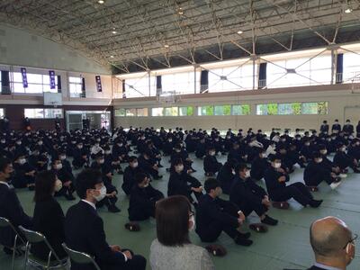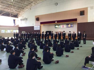 9月14日(水)、令和4年度就職・進学試験壮行式が行われました。各クラスの代表者、倉橋君、山元君、米良君が立派な決意表明をしてくれました。また、学校長より「自信を持って挑むように」と激励の言葉をいただきました。