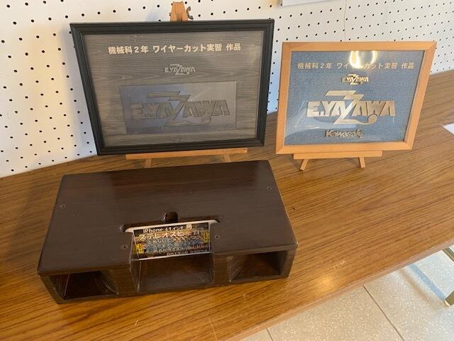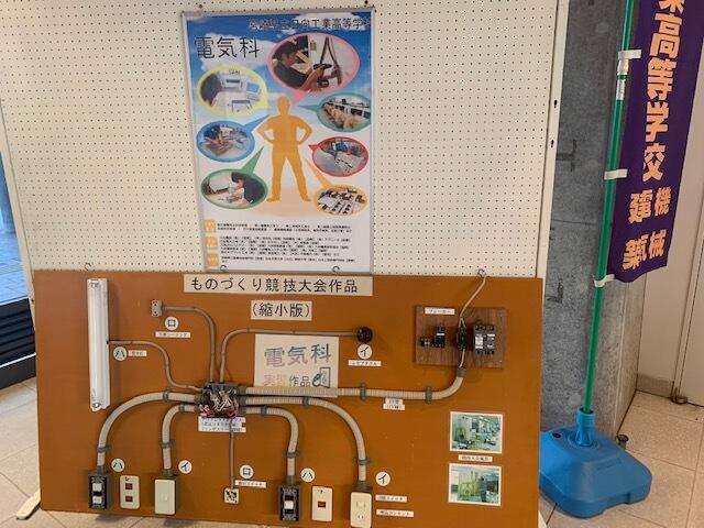 1年延期となった国文祭・芸文祭が開催されていますが、日向市では「日向市のお国自慢」、「牧水・短歌甲子園」、「刀匠松葉國正刀剣展」など9事業を展開しており、その中の一つとして、「日向の高校学習成果展」が行われ、本校生徒の製作した作品が9月22日まで日向駅ステーションギャラリーに展示されています。旋盤やワイヤーカット、電気工事、木材加工等の実習の成果が十分に発揮されています。