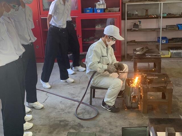 予選を勝ち上がった日向工業高校の4名の生徒(河野匠翔M3、児玉海晴M2、長友真一M2、横井昂生M2)が、第13回九州地区高校生溶接技術大会に参加し、見事に団体の部で3位、個人の部で児玉海晴さんが1位に輝きました。児玉さんは、11月に神奈川県で開催される全国大会への出場権を獲得しました。本校の生徒が優勝するのは、平成28年の甲斐惇平さん以来5年ぶり。また、団体の部で入賞するのは、令和元年以来2年ぶりの快挙となります。ものづくりを基盤とする専門高校で、このような賞を得ることは最高の栄誉と言えます。これまで、指導していただいた先生方にも心より感謝いたします。