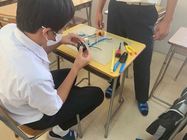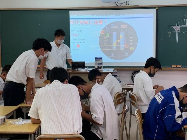 9月24日(金)に、県主催の初期研修(採用1年目の先生の研修)が本校で行われました。日向工業には、本年度3名の新規採用教員が赴任しております。数学科の山本大輔教諭、英語科の立山嵯斗志教諭、電気科の田村優雅実習教師の3名です。そのうち、山本教諭と立山教諭が資質能力の向上を目指して研究授業を行い、県内の先生方がオンラインで視聴するという事業が行われました。また、午後からは電気科の長嶺光教諭が模範授業として直列回路の授業を実践しました。該当クラスの生徒も一生懸命授業に参画し、素晴らしい研究授業になったと思います。先生の成長は、生徒の積極的な取組があって伸びていくものと思っています。先生方の成長のためにも、生徒諸君の主体的な取組に期待しています。