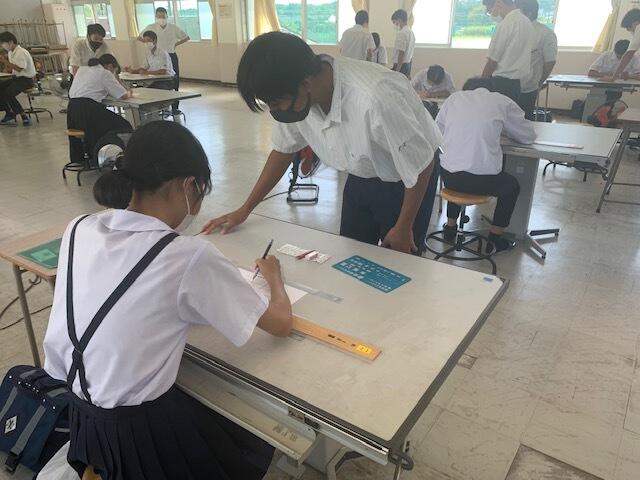 新型コロナウイルス感染症の影響で延期になっていた「一日体験入学」が本日開催されました。予定変更にもかかわらず多くの中学生が参加してくれました。機械科は、旋盤や溶接等を、電気科は電気工事や電子工作等を、建築科は製図や筆箱の製作にチャレンジしました。今日は現役の3年生が中心となって、先生顔負けの丁寧な説明をしてくれました。本年度は、ものづくりコンテストにおいて、旋盤・溶接・木材加工部門などで優秀な成績を収め、本県を代表する技術を持った生徒も増えています。日向工業高校で一緒に学べる日を心待ちにしています。