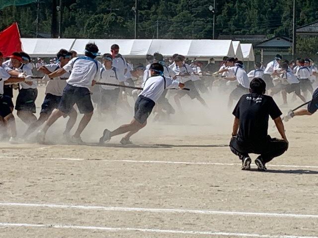 約2年もの間、多くの学校行事が中止や延期・縮小される中、第59回体育大会を生徒及び教職員のひたむきな取組とPTAの皆様のお陰をもって、全てのプログラムを終えることができました。コロナ禍の中「できない」ではなく、「どのように工夫したらできるか」を学ぶことができたと思います。これからも多くの行事が予定されておりますが、皆で力を合わせて乗り切っていきましょう。素晴らしい体育大会でした。