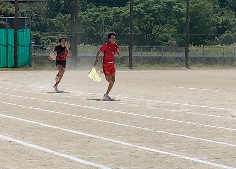 11月5日(金)に県総合運動公園内特設コースにて、全国高等学校駅伝競走大会宮崎県予選が行われました。競技人口の減少等の影響もあり出場校は僅か17校。そのような中、本校陸上部はチームを編成し17校の中の1校として大会へ出場しました。長距離専門の選手ばかりではありませんが、部員一丸となって走っている姿はとても感動しました。1区の小林凌明さんが11位とゲームを作り、後ろの走者につないでくれました。黙々と一人で朝練習をしている姿を見かけていましたが、その成果が十分に発揮できたのではないかと思います。