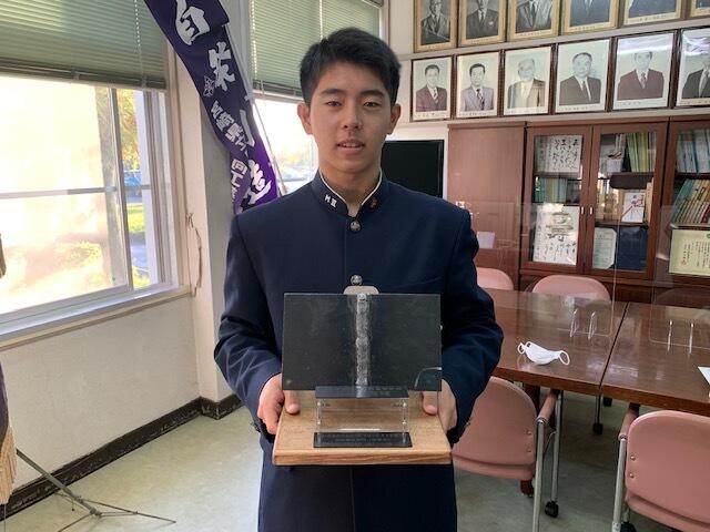 日向市市制施行70周年を記念した式典にて、本校の57期生(建築科)の井上一希さんが、青の国大賞「奨励賞」を受賞しました。日本の伝統木工技法である「組子細工」製作の取組が認められたものです。