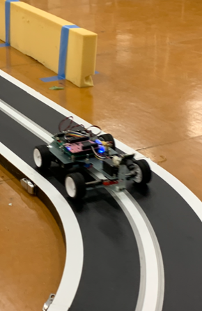 ジャパンマイコンカーラリー県大会を11月3日に控え、練習も大詰め。電気技術部が放課後遅くまでプログラムの調整をしていました。マイコンカーラリーとは、マイクロコンピュータを搭載した模型自動車がコースを自動制御で走りタイムを競う競技で、全国大会を目指して生徒たちが一生懸命に取り組んでいる競技です。製作には、設計技術、機械加工技術、制御技術、電子回路に関する技術など、工業に関する総合的な技術や知識が求められます。部員は、マイコンカーの走りを最終チェックしながら、プログラムの微修正に余念がありませんでした。九州大会出場を目指して頑張って欲しいと思います。