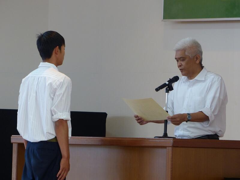 いじめは重大な人権侵害であることを確認し、生徒が安心して学校生活を送るために「いじめは絶対に許さない」という決意とともに宣言文を読み上げました。生徒会からの呼びかけを受け、生徒1人ひとりがいじめについて真剣に受け止め「いじめを許さない」という気持ちを新たにしました。