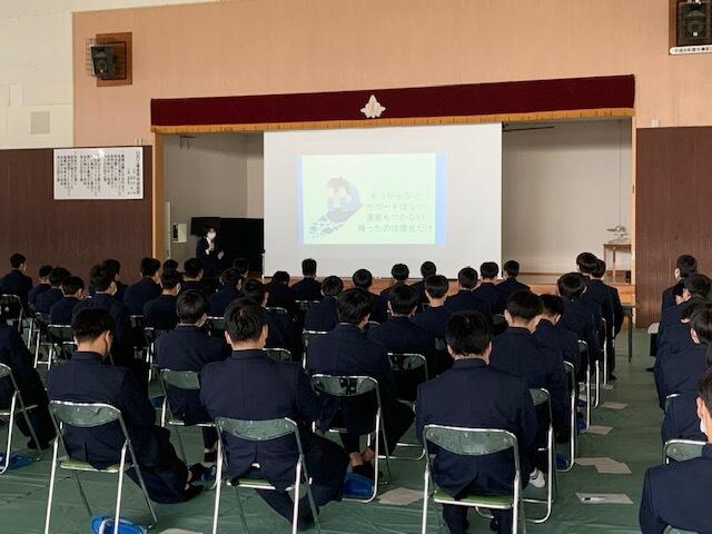 令和3年度を締めくくる終業式が本日行われました。コロナ禍でも「できない」ではなく、どうしたら「できる」のかを考えた一年だったと思います。結果として、感染防止対策を図りながら、ほとんどの行事を実施することができました。また、部活動やものづくりコンテストなど多くの大会で表彰されたのも一つの成果だと思います。