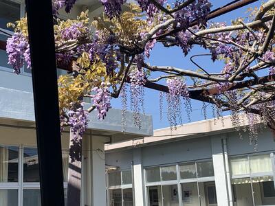 校内では、薄紫色のきれいな藤の花が咲き始めています。花言葉は「歓迎」。希望を胸に前日入学した104名の1年生を心から歓迎しているようです。もう一つの花言葉は「優しさ」。令和4年のスローガンは「優しさと思いやり」と1月の全校集会で話しました。この藤の花の花言葉のとおり、新入生を心から歓迎し、新入生が一日でも早く学校生活に慣れるよう、優しさと思いやりを持ってしっかりとサポートしていきましょう。