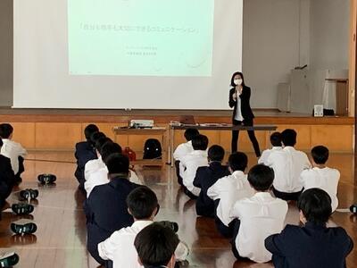 1年生のオリエンテーションの1コマを活用し、「自分も相手も大切にできるコミュニケーション」と題し、SUNWARD LAB株式会社の代表取締役 長友まさ美様にご講演をいただきました。1年生は入学間もないため少々緊張気味でしたが、「自分の思いを伝える」そして「その思いを受け取る」という行為を、ワークショップを交えながら実践しました。そもそも人と人は誤解が生じやすいようにできているため、相手の見えない頭の中(考え)をクリエイティブに捉えることによって見え方が変わるというもの。相手の弱点をプラス思考で見てあげると、相手も自己肯定感を持てるようになるのではないでしょうか。充実した1時間でした。