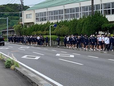 ゴールデンウイーク中日の今日、3年ぶりとなる歓迎遠足を実施しました。天候も良く、絶好の遠足日和となりました。歩いて目的地のお倉ヶ浜運動公園まで向かい、現地ではサッカーやキックベースボールなどを楽しみました。新型コロナで気持ちが曇りがちになるこの頃ですが、生徒たちも感染防止対策に努めながら思いっきり楽しんでいたようです。