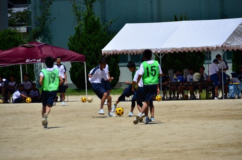 サッカー、ソフトボール、バレーをそれぞれの学年で分かれて行い、勝敗を争いました。